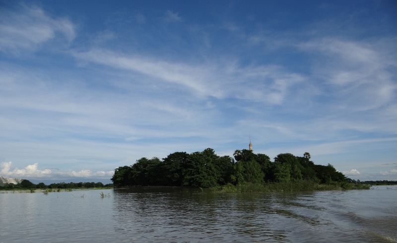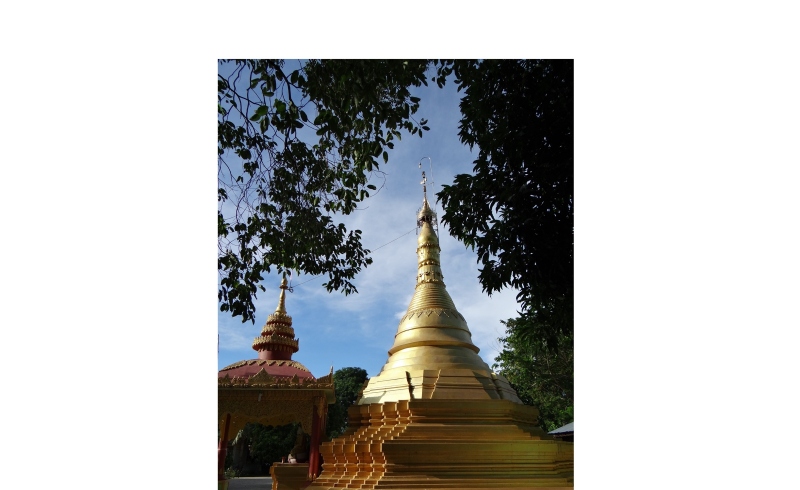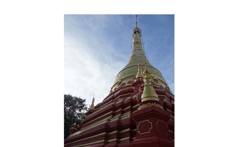 8月24日第二個安居月月虧日(布薩日),作者到此一遊,目睹佛塔崩毀,見狀於心不忍,心想:「今朝值逢修塔緣,遊此寶塔宿有緣,莫嫌財少不信施,財多未必逢今朝」珍惜當下善緣,因而隨即解囊信施兩萬緬幣,冀望塔剎速能恢復如初,利益世人。是時,一群鄰近村民乘船來到這裡,集體禮佛、誦經、迴向。普遍緬甸人假日前來佛塔禮拜自娛。虔誠膜拜的模樣,凡見者生起一股「安祥和諧」之感覺。