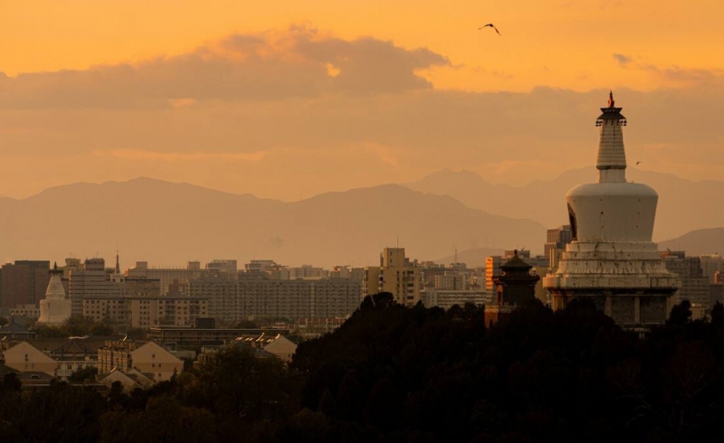 北海白塔,位于北京北海公园琼华岛上,是北海的标志性景点。建于清初顺治八年(1651年),是一座尼布尔风格的覆钵式塔。北海白塔据建塔石碑记载,当时“有西域喇嘛者,欲以佛教阴赞皇猷,请立塔寺,寿国佑民”,得到皇帝的恩准,于是修建了永安寺和白塔。塔高35.9米,上圆下方,富有变化,为须弥山座式,塔顶设有宝盖、宝顶,并装饰有日、月及火焰花纹,以表示“佛法”像日、月那样光芒四射,永照大地。