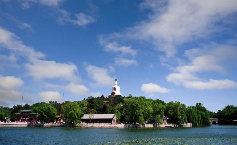 北海白塔,位于北京北海公园琼华岛上,是北海的标志性景点。建于清初顺治八年(1651年),是一座尼布尔风格的覆钵式塔。北海白塔据建塔石碑记载,当时“有西域喇嘛者,欲以佛教阴赞皇猷,请立塔寺,寿国佑民”,得到皇帝的恩准,于是修建了永安寺和白塔。塔高35.9米,上圆下方,富有变化,为须弥山座式,塔顶设有宝盖、宝顶,并装饰有日、月及火焰花纹,以表示“佛法”像日、月那样光芒四射,永照大地。